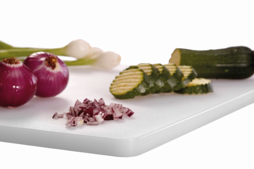 For fish, meat, vegetables or fruit – food-safe, anti-slip cutting board in a light and handy design.