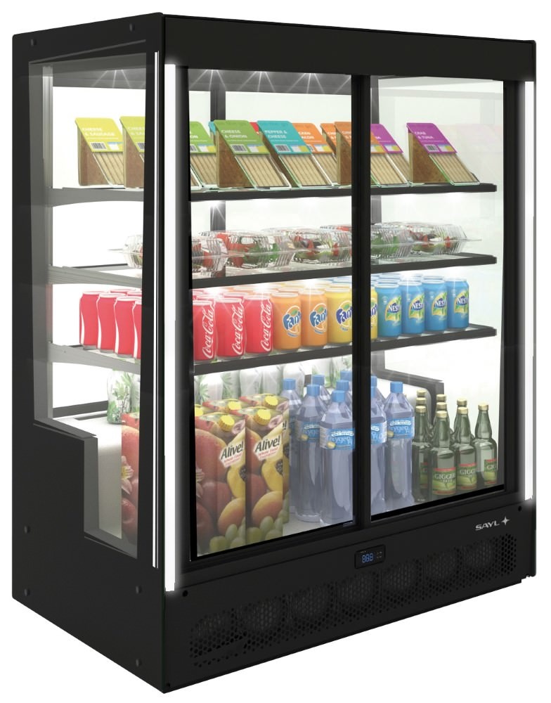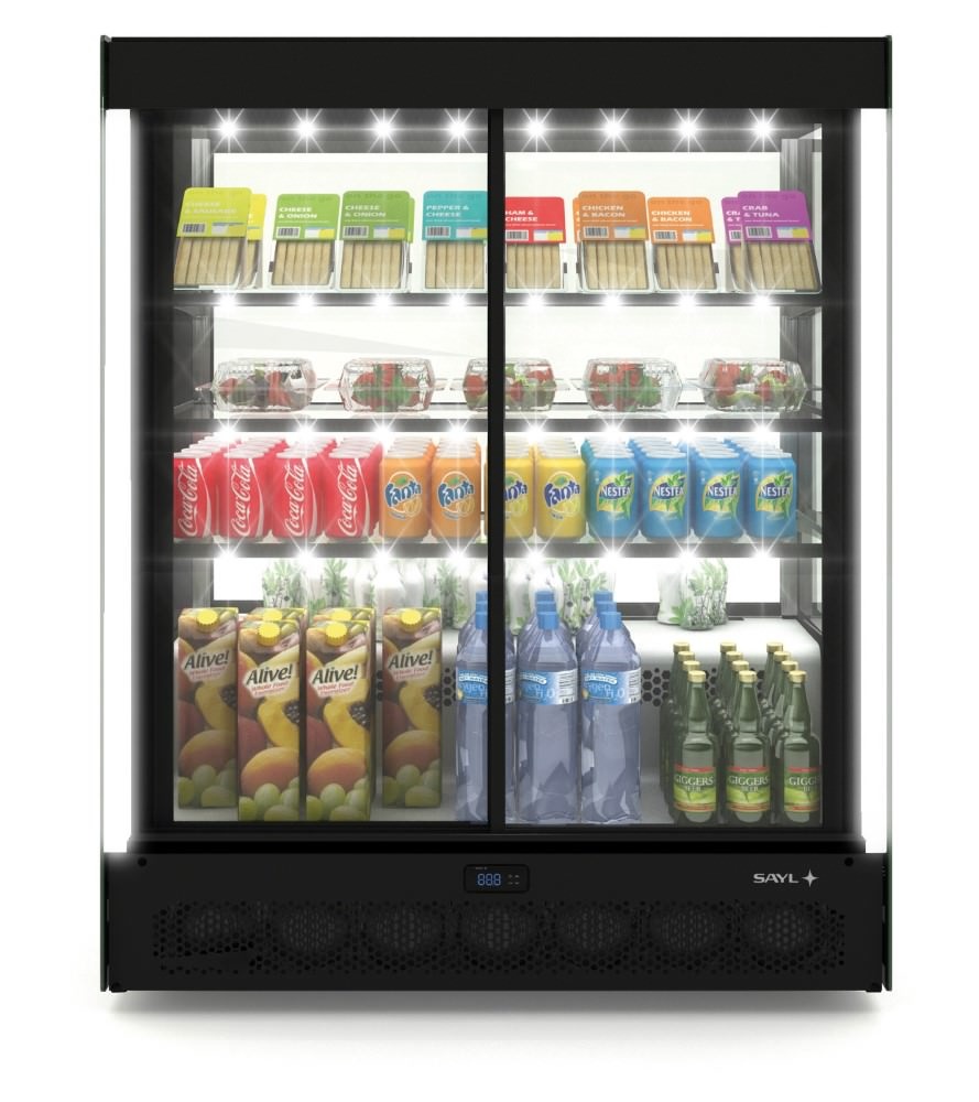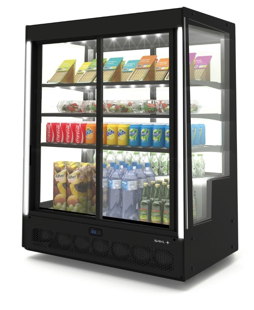 temperature range +4°C up to +8°C (at an ambient temperature of 21°C) • digital temperature display • sliding doors on the front and the back • suitable for self-service • long-living LED lighting on every level • lateral lighting for more attraction • increase your sales through ideal visibility of your products • modular design offers possibility to place several units in line • particular energy-efficient through double glazing • all glasses strengthened • glass shelves height-adjustable • flat top ideal to be built in counters • 3 glass shelves 900 x 360 mm • compressor on the back for optimal space-usage on every shelfSpecifications