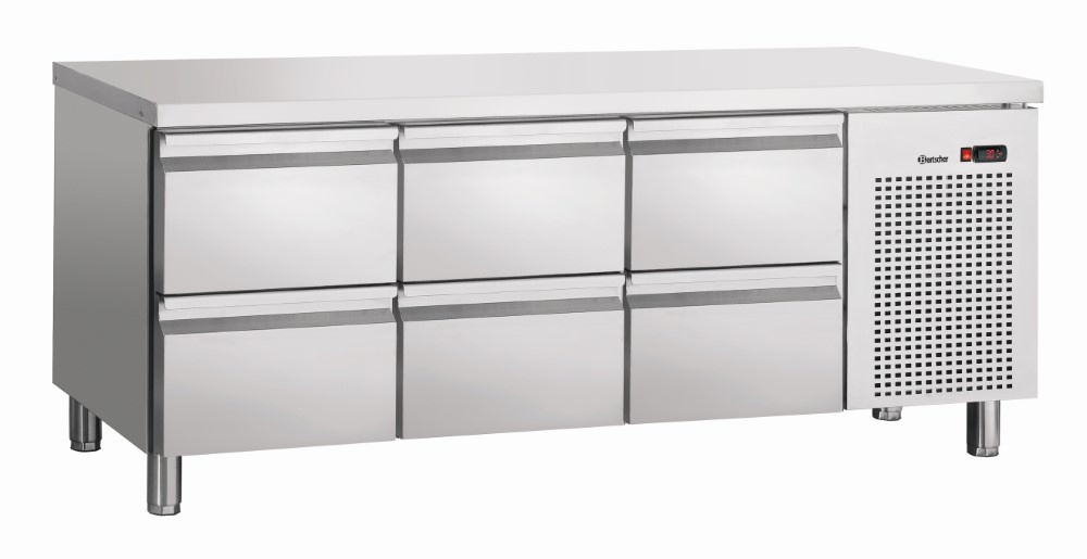 Refrigerated Table with Splashback with 6 Drawers, GN 1/1, from 0° C to 10 °C, Side-Mounted Compressor