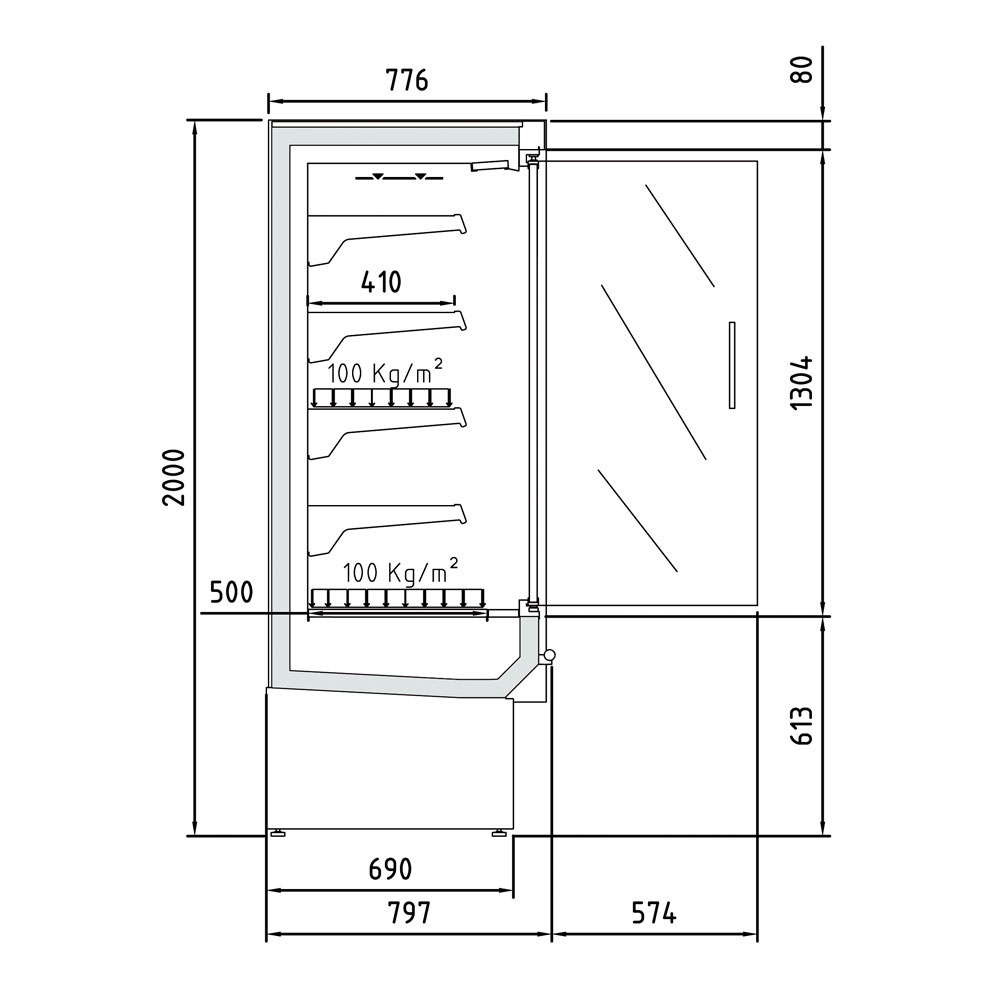Regał chłodniczy 2090L, od -1 do 5°C, 797x1310x(h)2000mm, obieg wymuszony, wentylowany, czarny