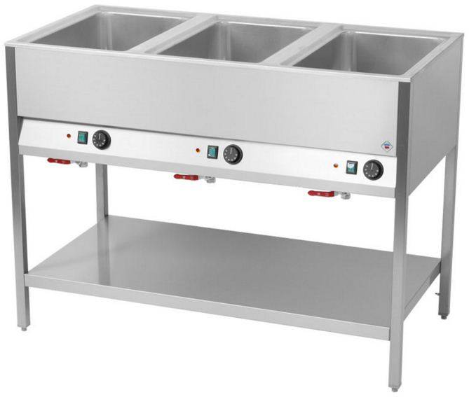 Floor model Electric Bain Marie, 3-Chamber with Drain Tap, GN 1/1, 2,1 kW