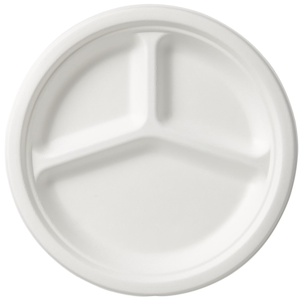 Round Bagassa Dinner Plate Ø260 mm, White, Biodegradable, 3-Comp (Pack of 500)