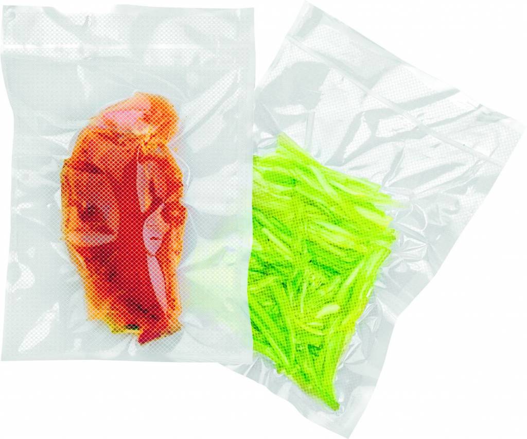 - Diamond-shaped structure of the channelled side allows the air to exit more quickly compared to smooth bags