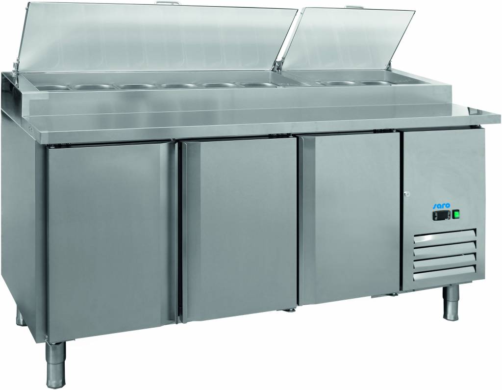 3-doors Salad Prep Table 9x 1/3 GN with Top Unit, 2 °C to 8 °C, Side-Mounted Compressor