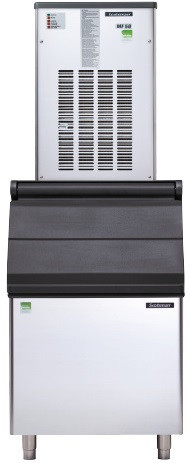 modular ice generator finish of polished stainless steel and a cover made of PS. Split version requires a separate condenser or low temperature, a central refrigeration system. Removable side panels facilitate maintenance and service. The device has an electronic control panel, double safety gear motor, a water level sensor drill reinforced alloy and the ball bearings.