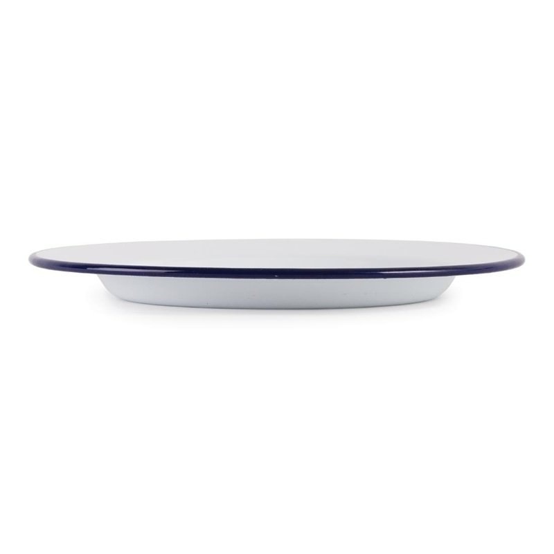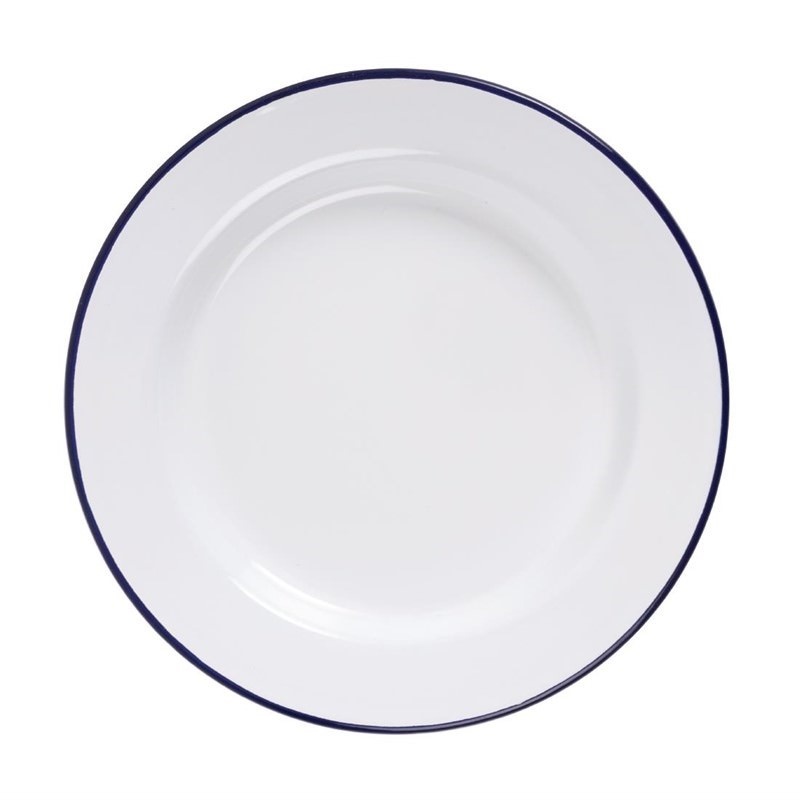 Creating a table setting with charm is easy with this range of blue and white enamel tableware. This dinner plate from Olympia is crafted from heavy-duty steel and is covered with an durable, fused-glass coating, leaving a finish that is smooth to the touch. The more you use and cook with these plates, the more character they will take on. The enamel coating provides the plates with a heat and chemical resistance, meaning they are safe to use in the oven and to be washed in the dishwasher.