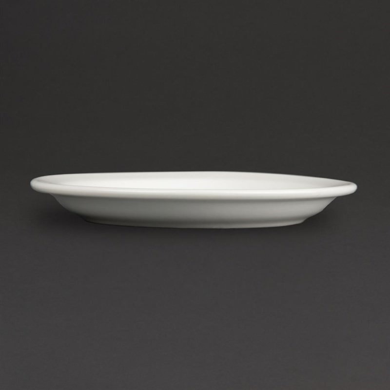 Designed with a simple, clean shape in a soft ivory colour, this 6" narrow-rimmed plate from Olympia Ivory will impart a contemporary feel to your food service. Ideal for use in cafés, hotels or restaurants, the plate is made from fully vitrified porcelain with rolled edges, which gives heat and shock resistance, as well as high glaze durability. The plate is oven, Microwave and dishwasher safe, allowing it to withstand the rigours of a busy catering service.
