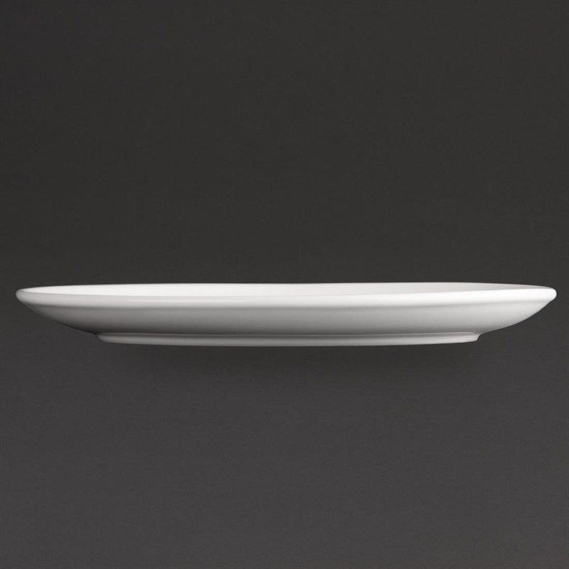 For simple and practical catering solutions, choose respected brand Athena Hotelware and its great value 10x 7 3/4" porcelain oval Coupe plates. This popular crockery range is ideal for use in such commerical environments as pubs, canteens and bistros and are tough, functional and versatile.