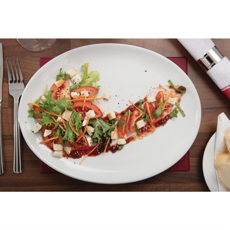 Specialist brand Athena Hotelware have created a modern classic as part of its popular crockery range with its great value 12x 9 1/2" porcelain oval Coupe plates, for simple and practical catering solutions they are ideal for use in such commercial environments as pubs, canteens and bistros and are tough, functional and versatile.