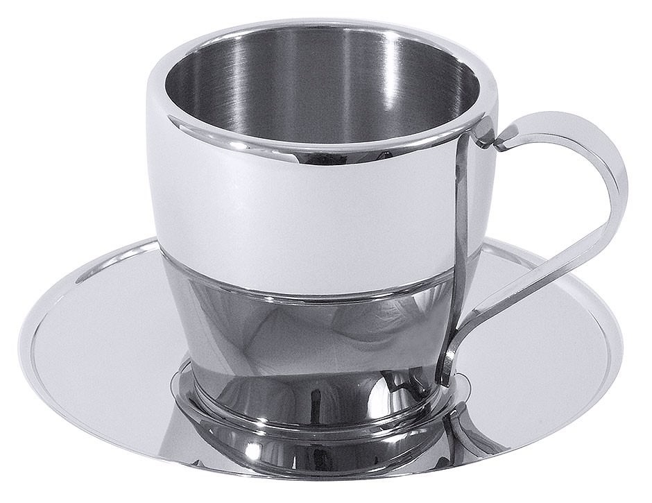 Silver Thermal Insulating Espresso Cup with Saucer 80 ml,