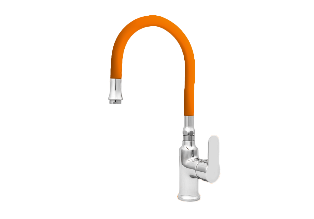 Sink mixer, single-hole, single lever. Flexible spout in different colors - orange, green, black, blue and red. The amount of battery varies according to the configuration of the spout. Total length 530 mm flexible spout. Mixing cold and hot water through the mixer ceramic. The set includes two flexible hoses connecting steel braided tip 3/8 ".