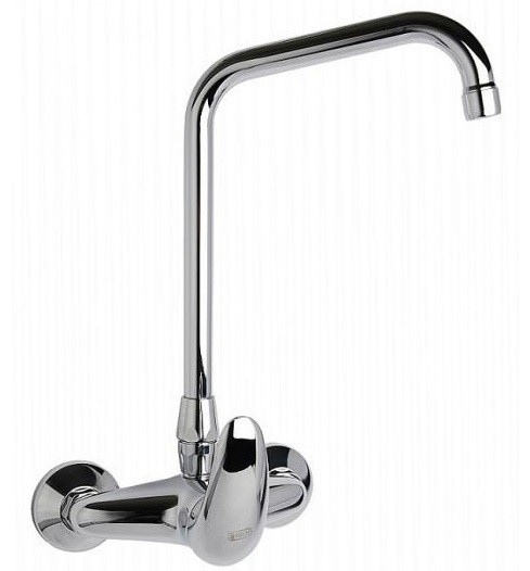 Sink single-lever wall. Swivel spout. Mixer ceramic battery. Connections - standard cam, wheel 150 mm.