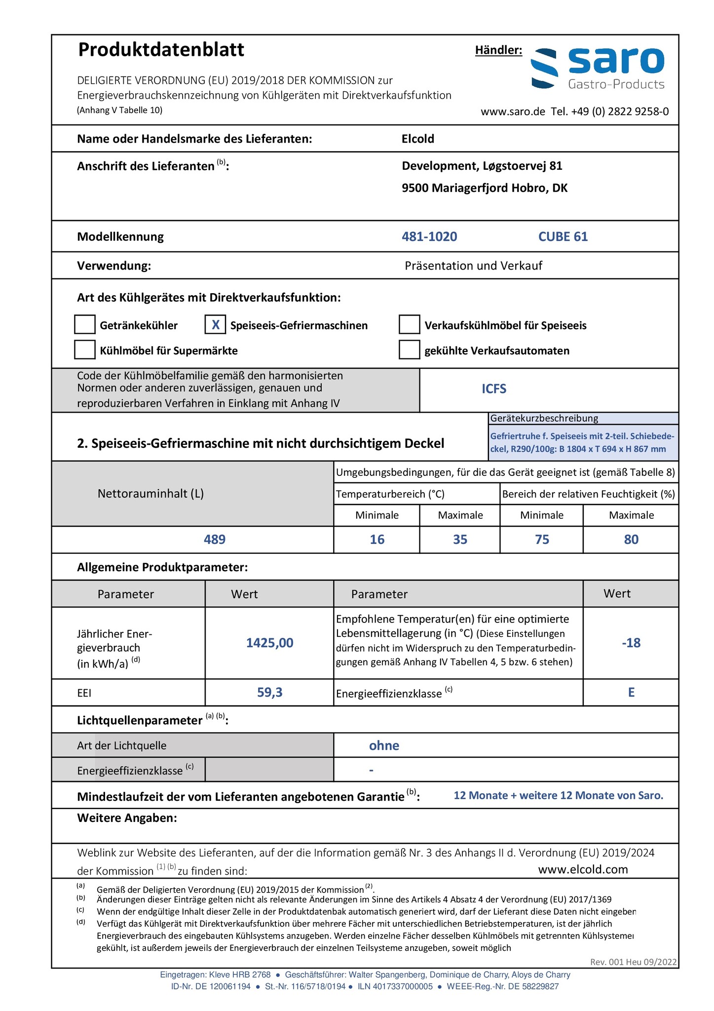 Skrzynia mroźnicza z izolowaną pokrywą przesuwną od -23 do -16°C, 1091L