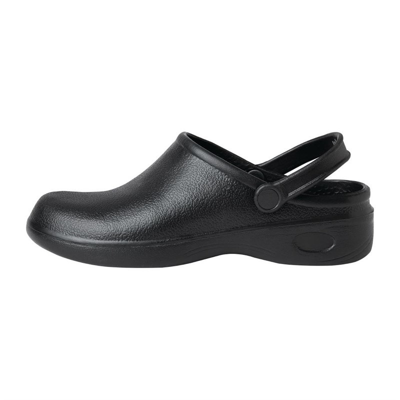 Slip-resistant clogs offering comfort and support for your feet during long shifts. Features single heel-strap for a secure fit.