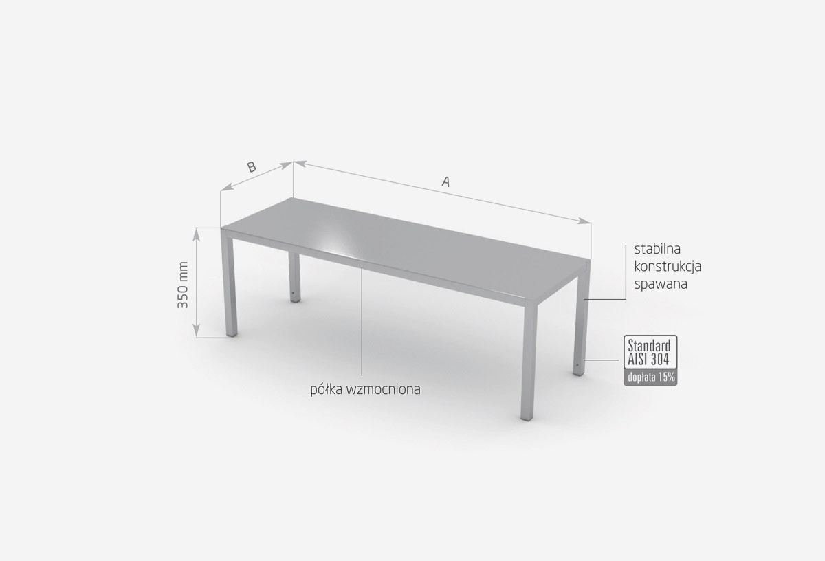 As standard, our products are made of AISI 430 stainless steel, and the elements exposed to the strongest chemical and organic agents are made of acid resistant steel AISI 304. All our furniture can also be made entirely of this material, surcharges to the AISI 304 standard have been given for each piece of furniture.