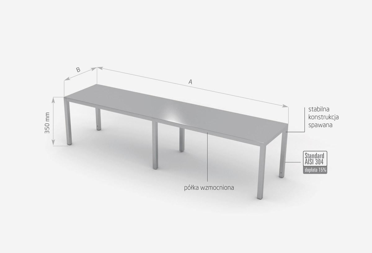 As standard, our products are made of AISI 430 stainless steel, and the elements exposed to the strongest chemical and organic agents are made of acid resistant steel AISI 304. All our furniture can also be made entirely of this material, surcharges to the AISI 304 standard have been given for each piece of furniture.
