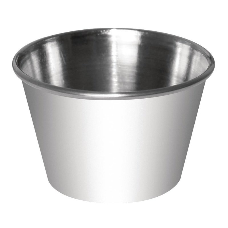 Stylish and contemporary 70ml stainless steel sauce cups, an ideal way of presenting sauces and condiments at the table.