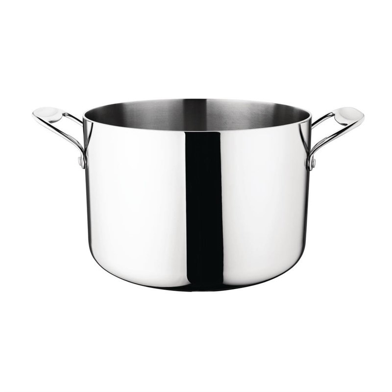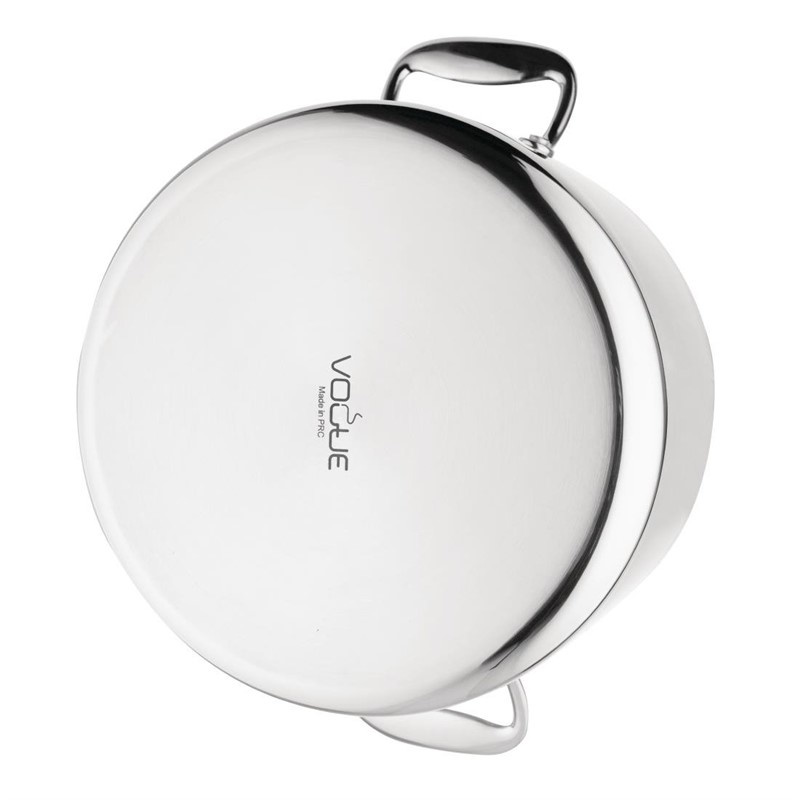This Vogue Tri-Wall heavy duty stew pan has an aluminium thermocore that has been sandwiched between stainless steel walls for even heat distribution that eliminates hot-spots. Their versatility makes them ideal for all manner of catering tasks and can be used on all heat sources including induction.