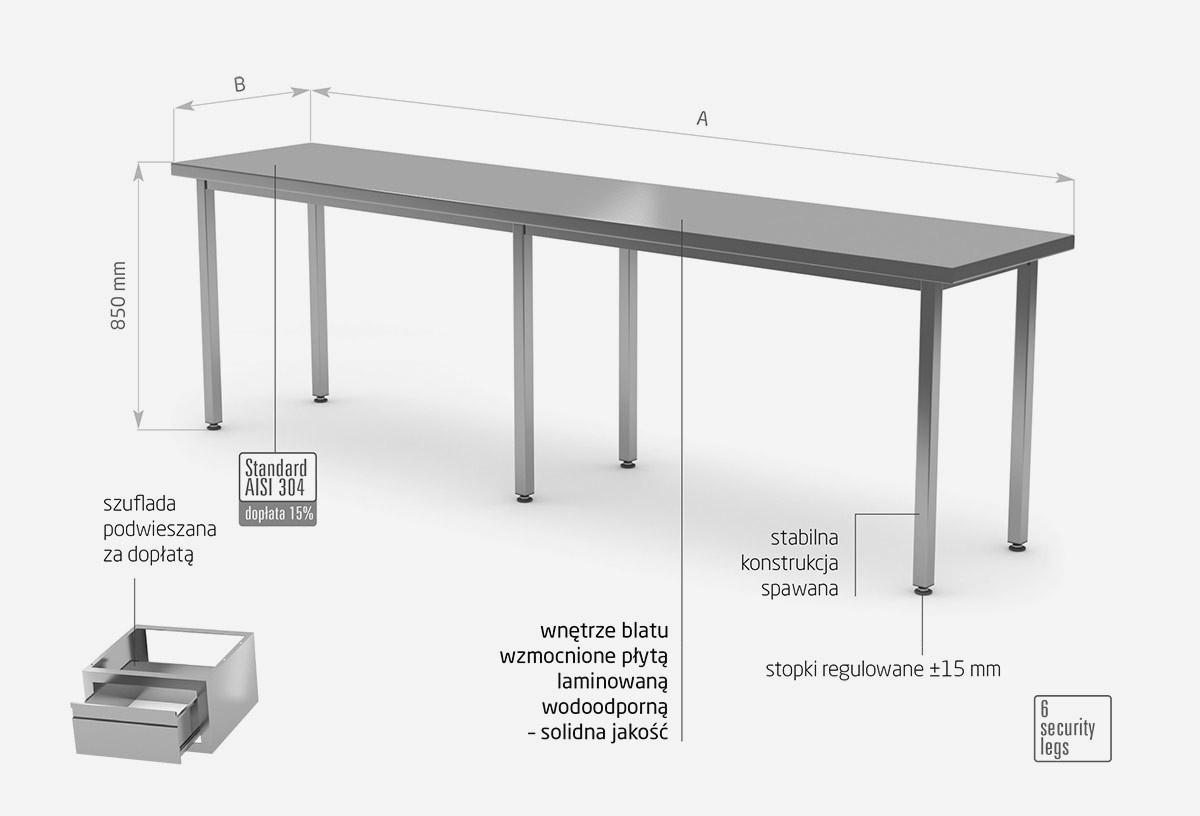 - central table without a shelf made of high-quality AISI 430 stainless steel,