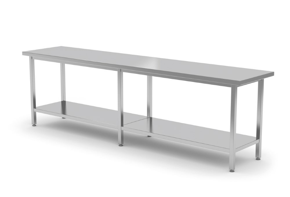 Stainless steel centre work table without splashback with undershelf, dimensions 2800x800x(h)850 mm
