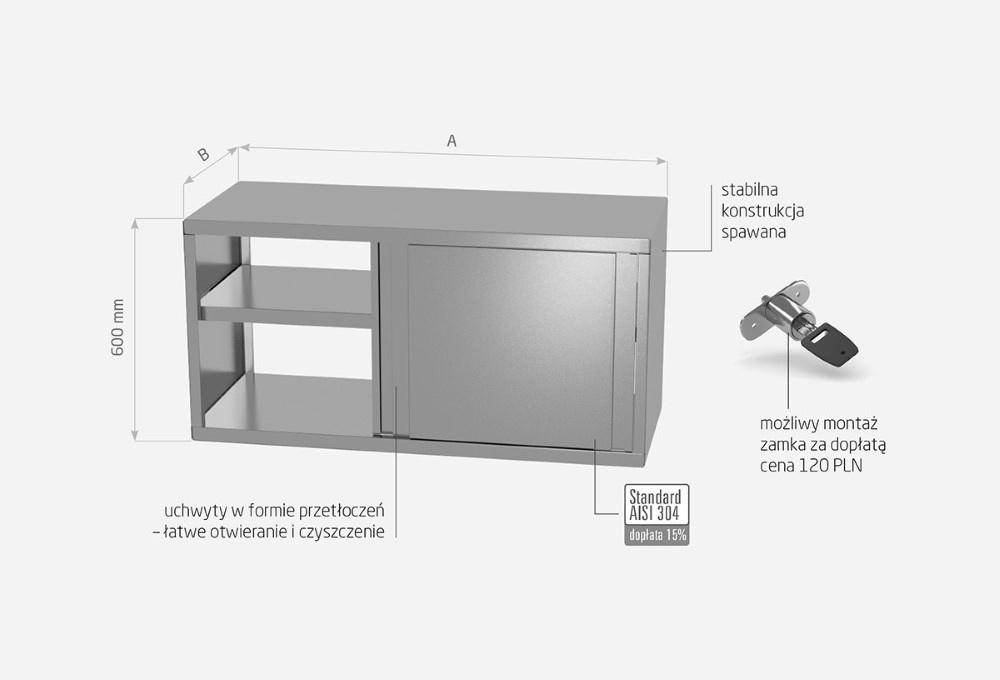 Stainless steel double-sided storage cupboard with sliding doors, dimensions 1100x400x(h)600 mm