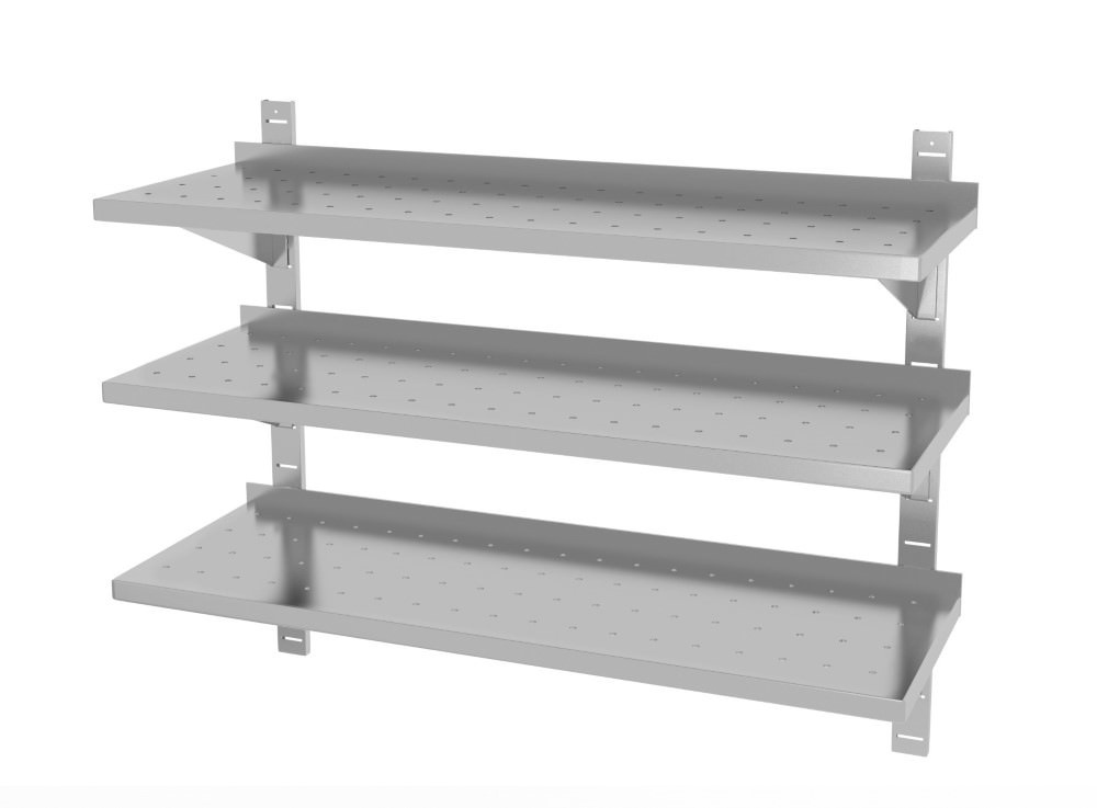 Stainless steel hanging shelf with three adjustable perforated shelves - with two brackets, dimensions 1400x300x(h)875 mm