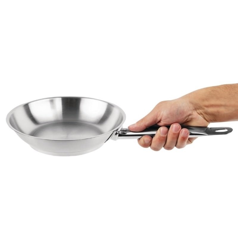 These Vogue stainless steel fry pans offer excellent professional quality and are part of our best selling range. Constructed from tough heavy duty 18/10 stainless steel with stay cool welded handles, they represent great value for money making them the ideal cooking essential for both professional kitchens and in the home.