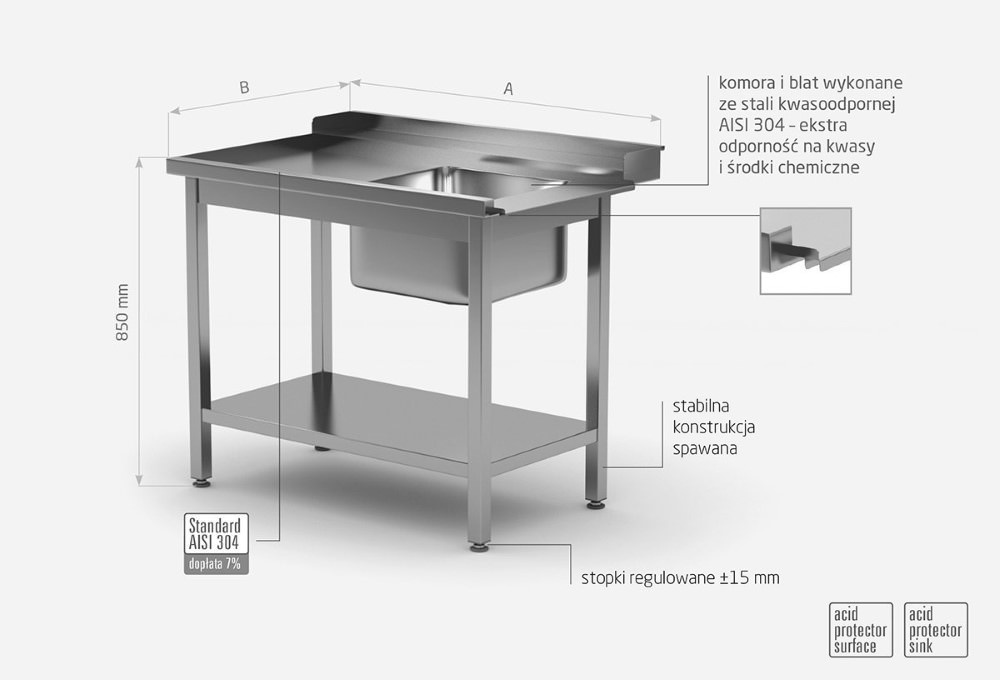 - table finished with a rim of h = 40 mm, which allows to maintain hygiene,