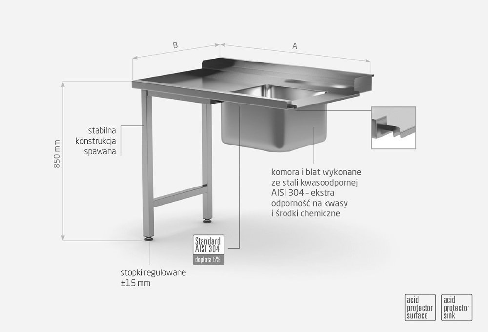 - table finished with a rim of h = 40 mm, which allows to maintain hygiene,