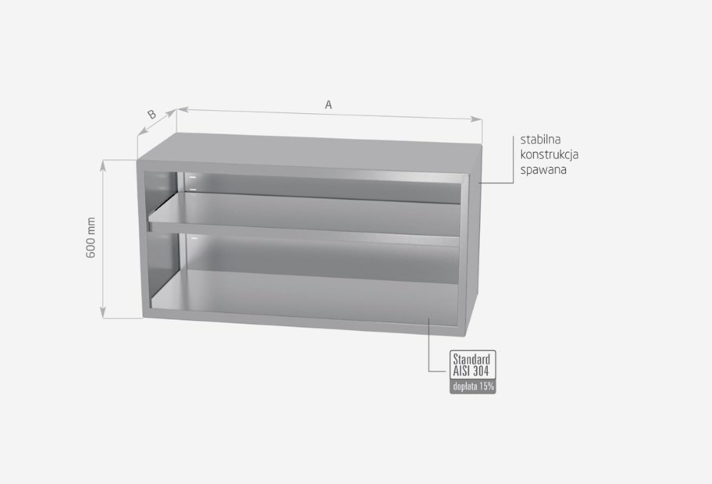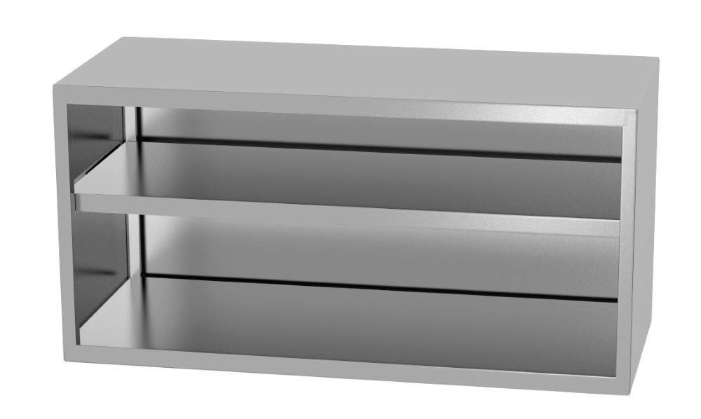 Stainless steel open wall mounted storage cupboard, dimensions 800x300x(h)600 mm