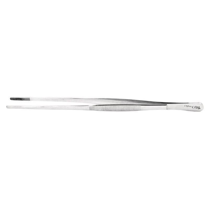 Designed for optimal precision, these 300mm round tip tweezer tongs from Clifton Food Range are an essential utensil for any commercial kitchen. Boasting an ergonomic design, these tweezers help you turn, lift and plate food with great accuracy, helping you dress and serve impeccably presented meals. Tweezer tongs are also easier to handle than conventional tongs, allowing you more control when in use. Constructed from high quality stainless steel, these tweezers are able to lift heavy food without bending or breaking, giving you superb results every time.
