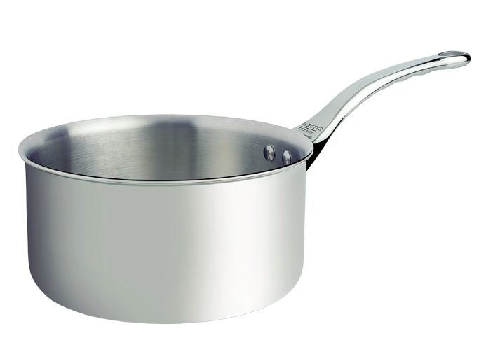 The Affinity saucepan with pouring rims sized in accordance with professional culinary standards. Undeformable cookware in multilayer material: combination of stainless steel on the outside and aluminium on the inside. Hyper reactive material: very rapide increase in temperature; cooking immediately stops when off the heat. Uniform diffusion of heat on the entire skirt and perfect heat distribution: even cooking. Ideal for reduction cooking, sauces. Riveted cast stainless steel handle: ergonomic for a comfortable grip; sleek design. Low temperature guaranteed handle. Range designed in a modern and elegant style. High-end mirror polishing. Tip: increase temperature gradually. Hygienic: it is dishwasher-safe. Occasional outer polishing with polishing paste to restore the original glow. All cooktops including induction.
