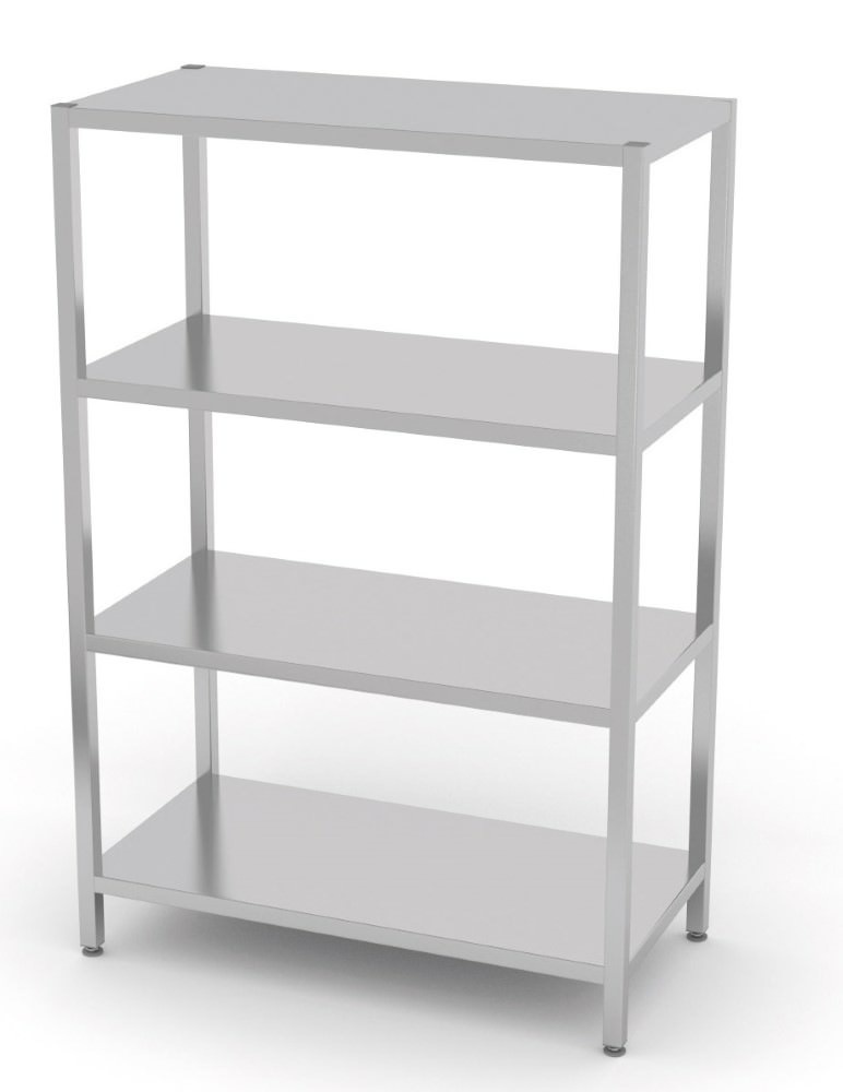 Stainless steel storage rack with 4 solid shelves, dimensions 1400x700x(h)1800 mm