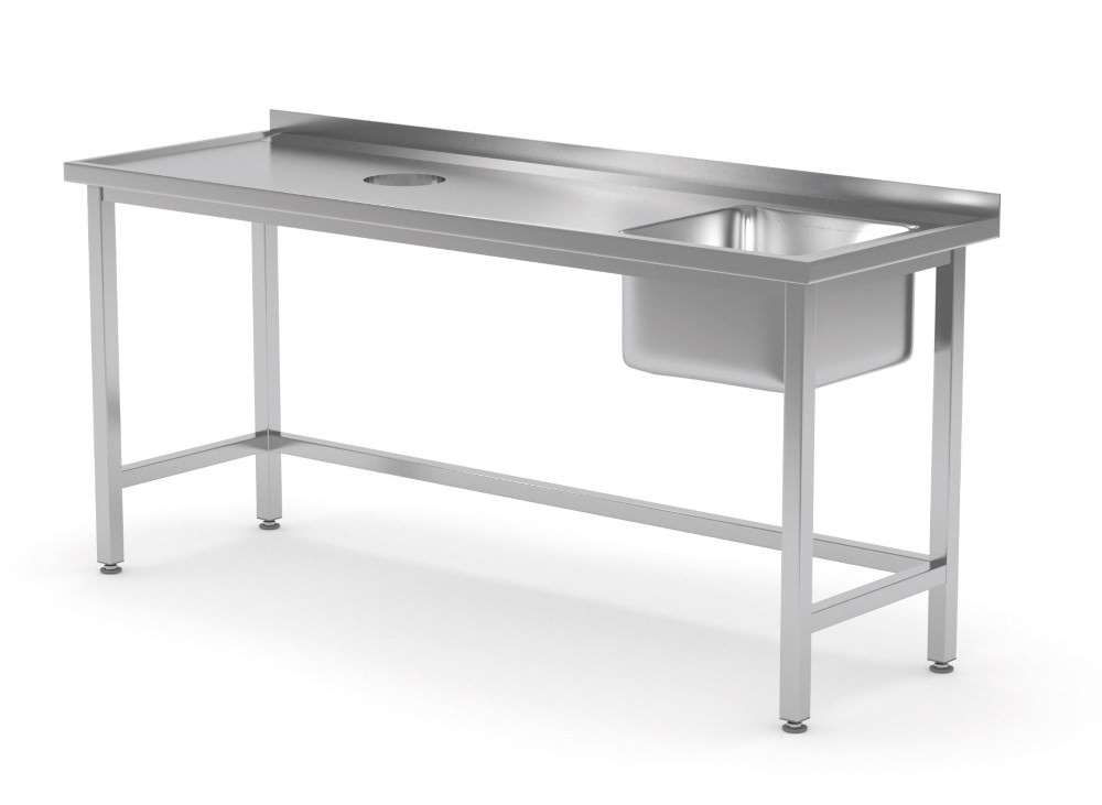 Stainless steel table with sink and waste hole - sink on right side, dimensions 1500x700x(h)850 mm