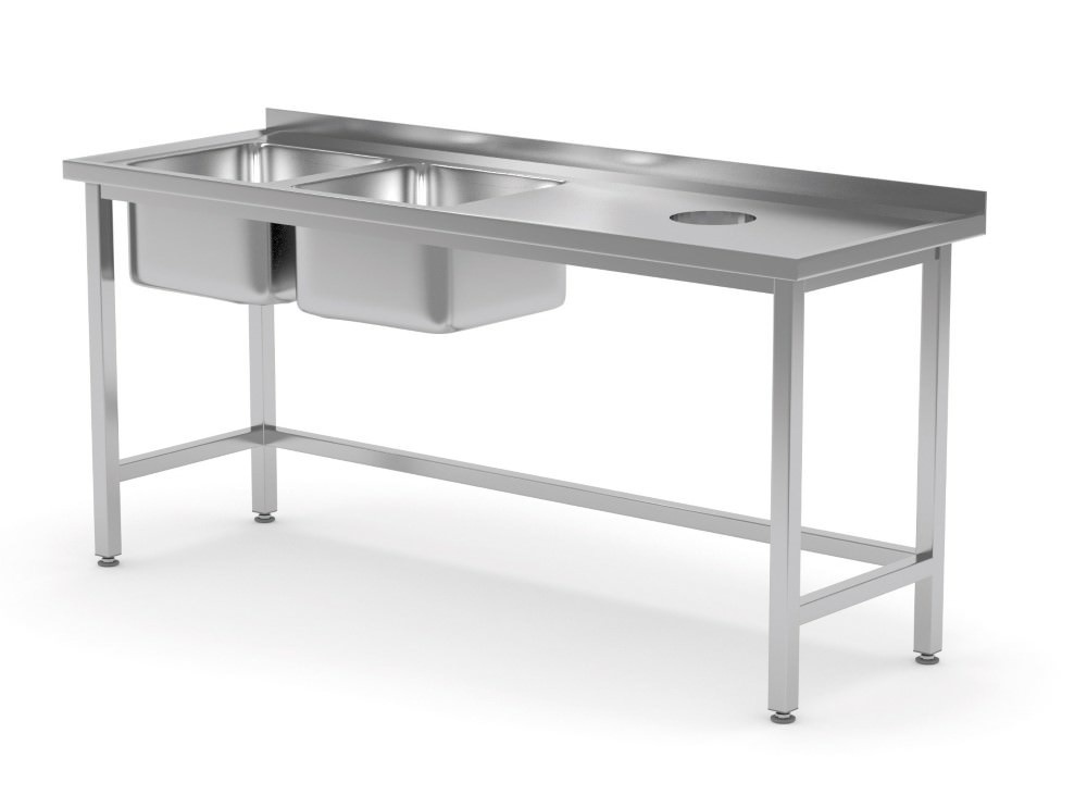 Stainless steel table with two sinks and waste hole - sinks on left side, dimensions 1500x700x(h)850 mm