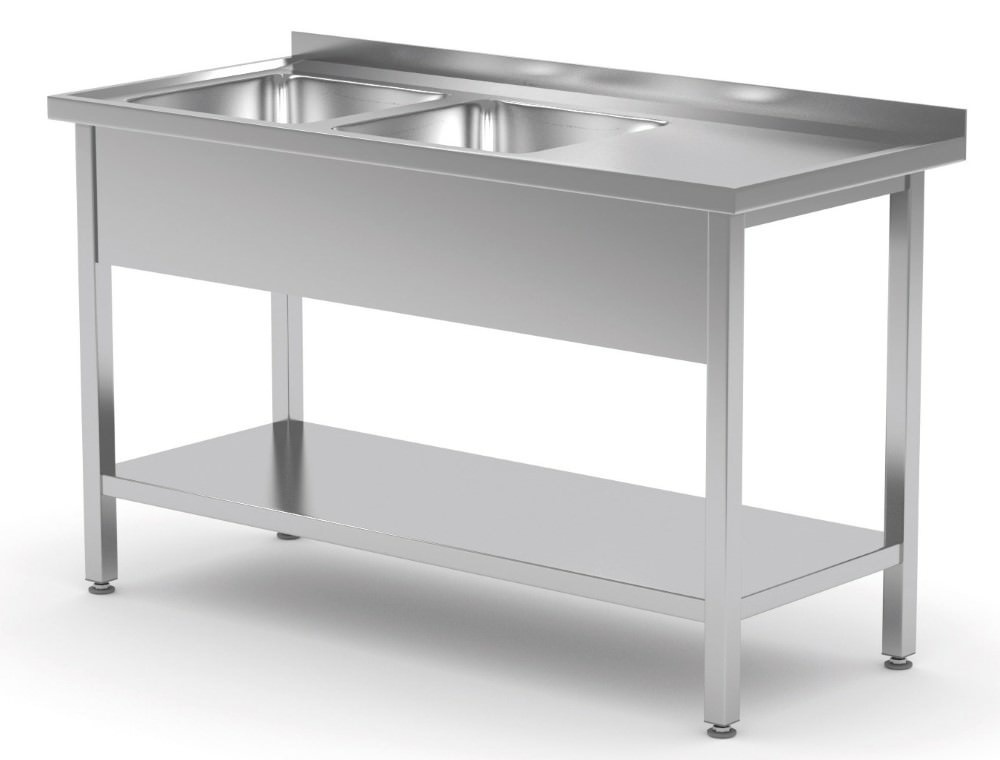 Stainless steel table with two sinks and undershelf - sinks on left side, dimensions 1100x700x(h)850 mm