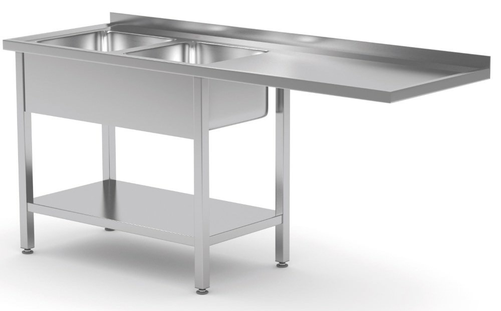 Table with two sinks, undershelf and space for fridge or dishwasher - sinks on left side | 2400x700 mm