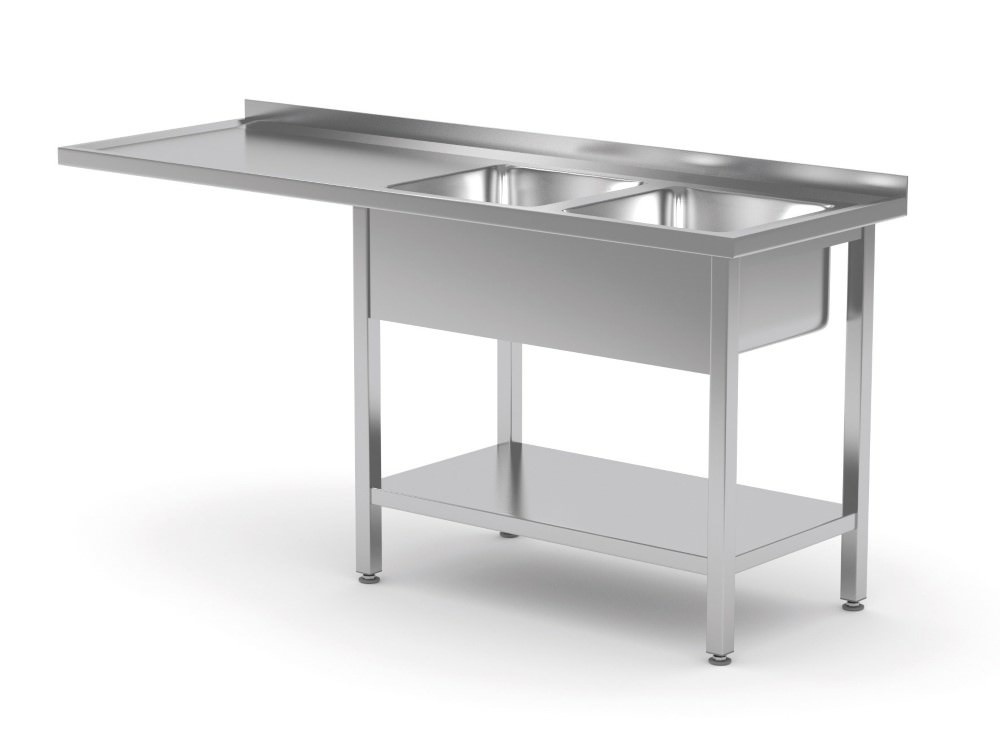 Table with two sinks, undershelf and space for fridge or dishwasher - sinks on right side | 2400x600 mm