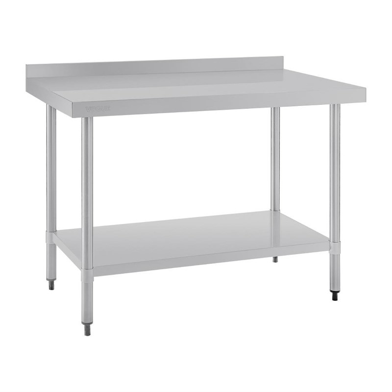 This 1200mm wide, high quality table provides an excellent foundation for any commercial kitchen environment. Practical, reliable and great value, it can be used for a whole host of for prepping tasks. It is height adjustable for comfort, and comes complete with galvanised steel undershelf to provide support and vital additional storage. Also supplied with upstand.