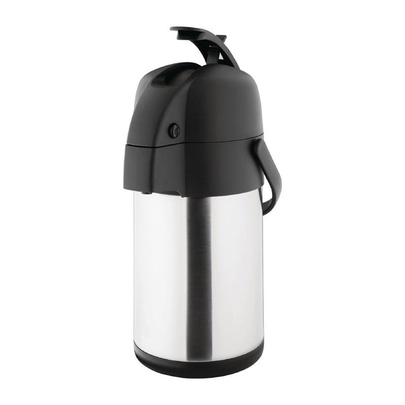 This smaller 2.5 litre airport is easier to carry and makes it simple to offer hot drinks at outdoor events or in meeting rooms. Finished in stylish brushed stainless steel, this attractive airpot is more durable than domestic alternatives and designed for prolonged heavy usage. The lever action makes it easier to draw hot water, tea or coffee.