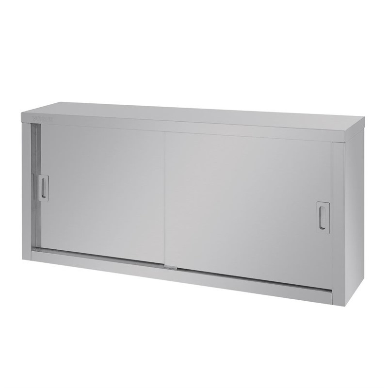 The Vogue large capacity stainless steel cupboard features sliding doors that make them ideal for use in busy kitchens and areas with limited space. These easy to clean cupboards help to store kitchen essentials in a hygienic and easy to access location. Wall model features adjustable shelf. Fixings not supplied.