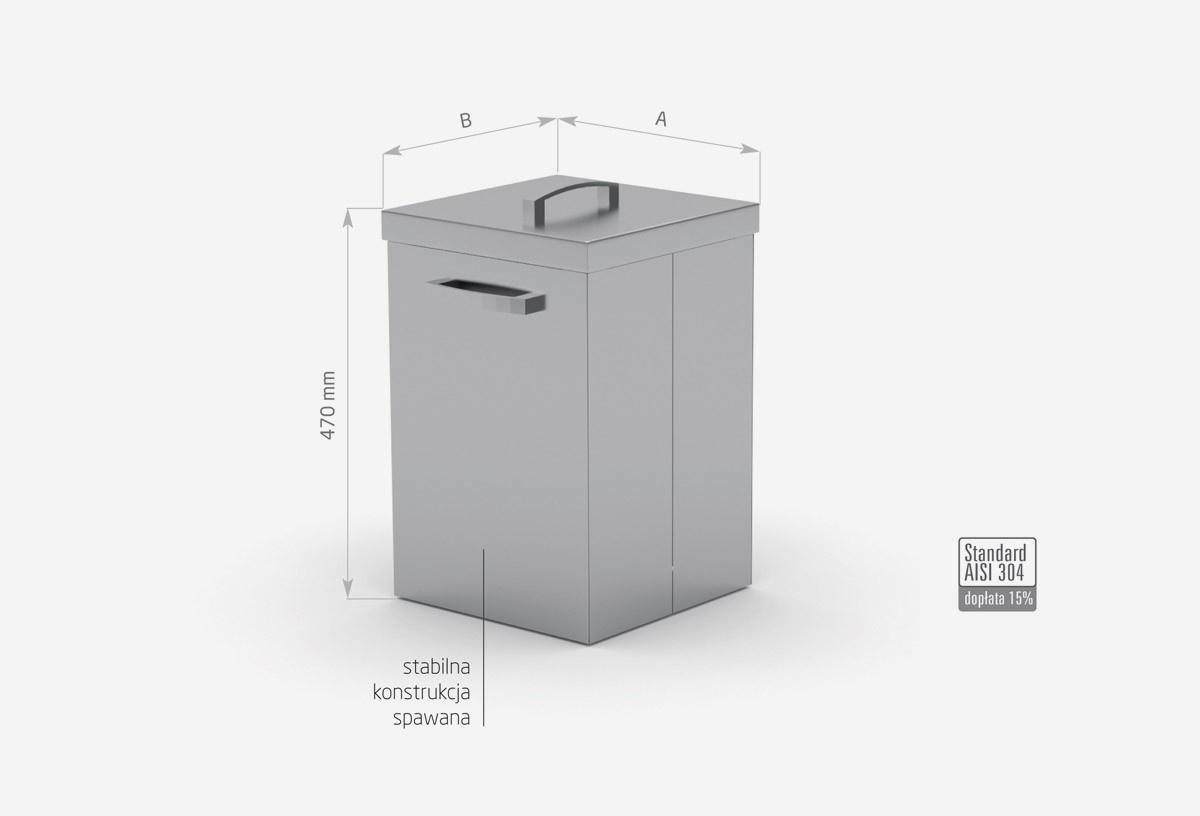 Stainless steel waste bin, dimensions 400x500x(h)470 mm