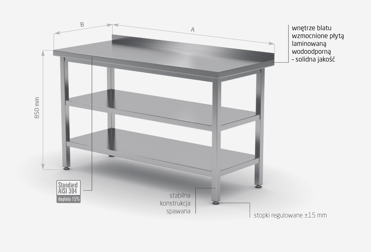 - table top finished with a rear edge of h = 40 mm, allowing for hygiene,