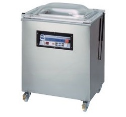Stationary Chamber Vacuum Packing Machine, Sealing 2x 460 mm, 100 m³/h, 2,2 kW, 230/400 V with Time-Controlled Remote Control, on Wheels
