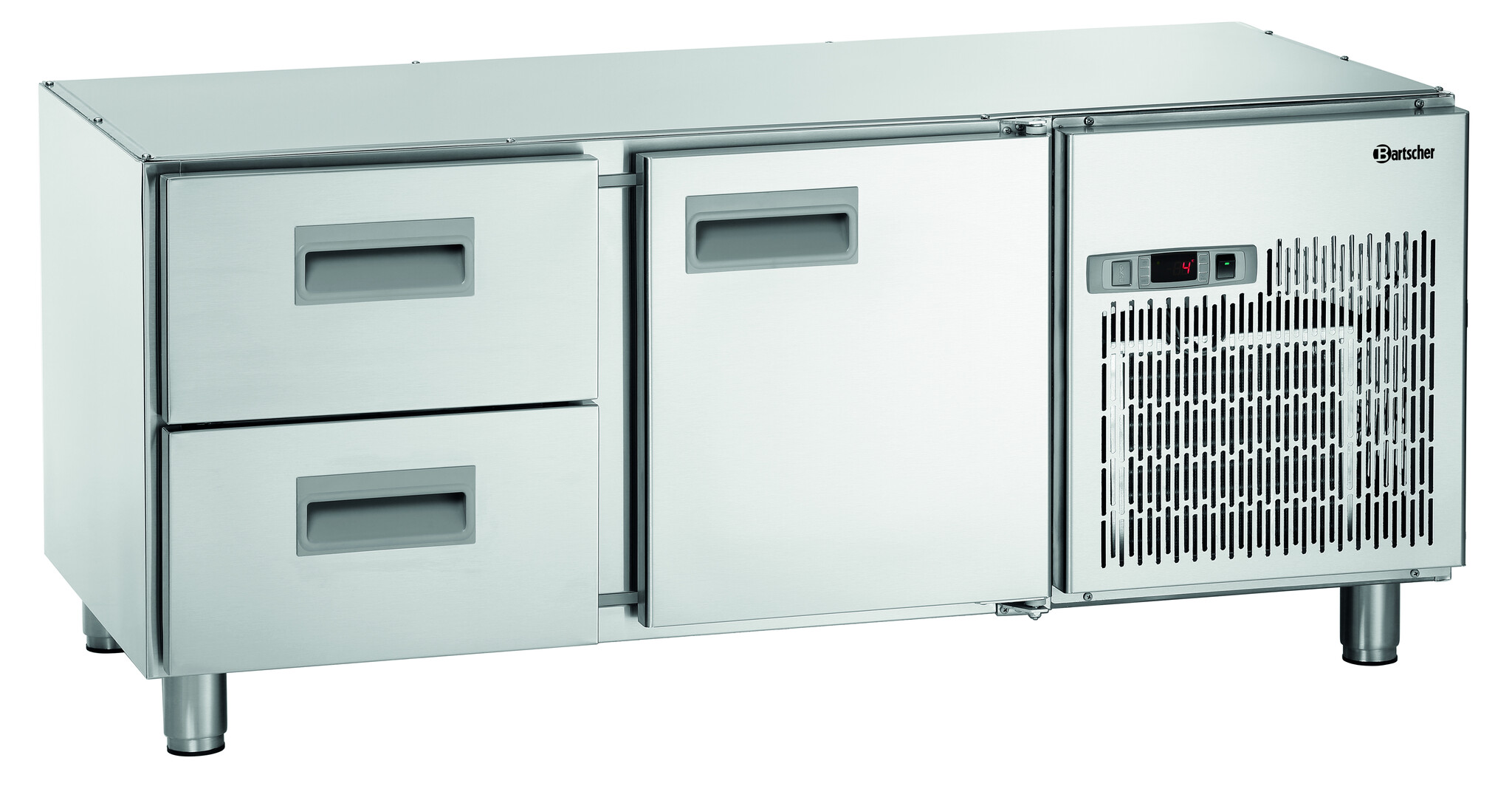 HomeRefrigerationRefrigerated TablesWorktop RefrigeratorsStół chłodniczy 1-drzwiowy z 2 szufladami od 0 do 10°C, agergat boczny
