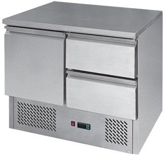 Single Door Refrigerated Table with 2 Drawers 300 L, from 2 °C to 8 °C, Bottom-Mounted Compressor