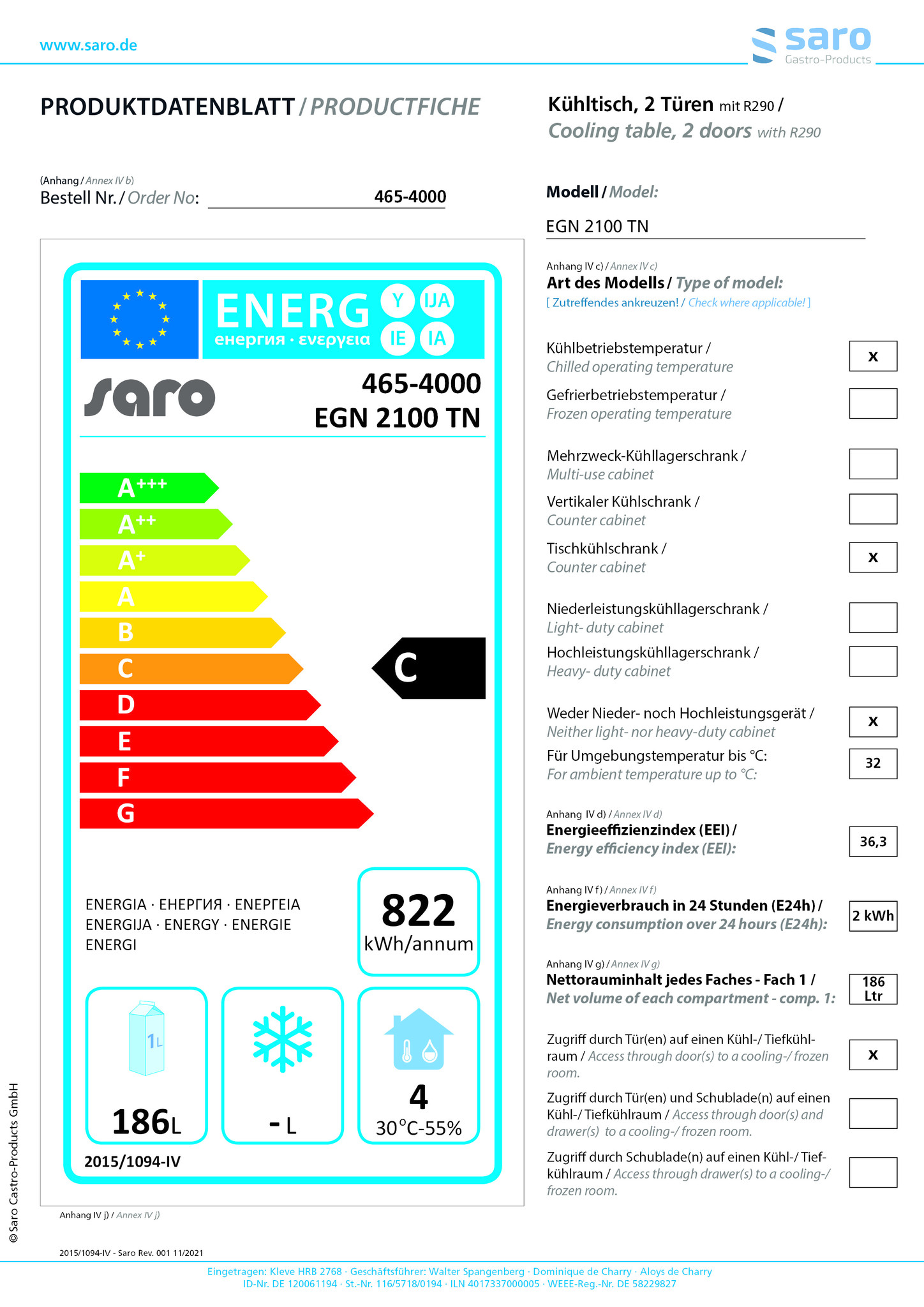 HomeRefrigerationRefrigerated TablesWorktop RefrigeratorsStół chłodniczy, 2 drzwiowy od -2 do +8 °C, 282L, 0,21 kW