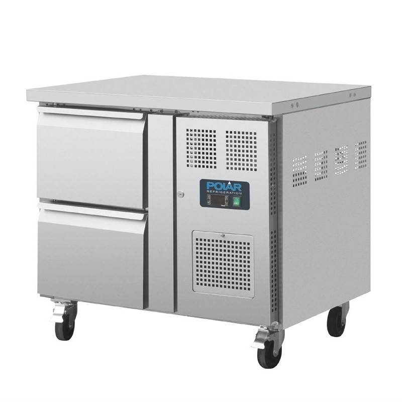 Refrigerated Table with 2 Drawers 124 L, from -2 °C to 8 °C, Side-Mounted Compressor