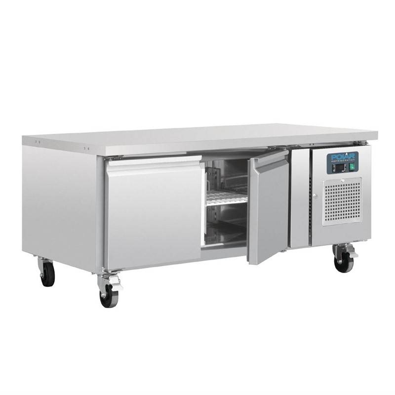 Double Door Refrigerated Table 214 L, from -2 °C to 8 °C, Side-Mounted Compressor
