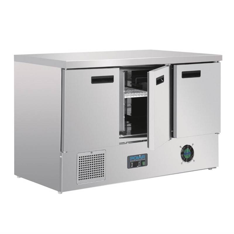 Tripple Door Refrigerated Table 368 L, from 2 °C to 5 °C, Bottom-Mounted Compressor
